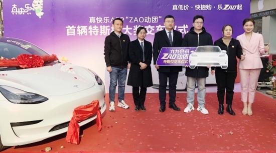 娱乐营销怎么玩出新高度?最近,“真快乐”APP推出抽特斯拉大奖活动,与消费者一起开“ZAO”,掀起一场全网热议的线上狂欢趴。1月19日,真快乐APP“ZAO动团”活动首辆特斯拉大奖交车仪式在河南洛阳隆重举行。交车仪式现场,获奖人楚先生在家人和公证处相关工作人员的见证下,接过特斯拉Model 3的钥匙,将新车开回家。
